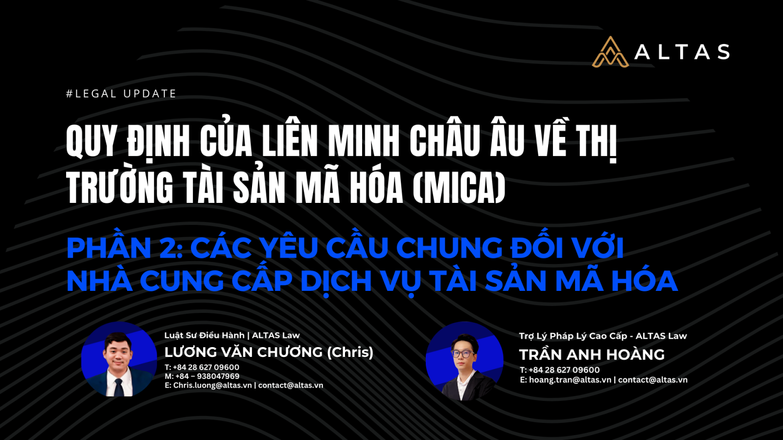Bản tin pháp lý: Quy định của Liên minh Châu Âu về Thị trường Tài sản Mã hóa (MiCA) – Phần 2: Các Yêu cầu Chung đối với Nhà cung cấp Dịch vụ Tài sản Mã hóa