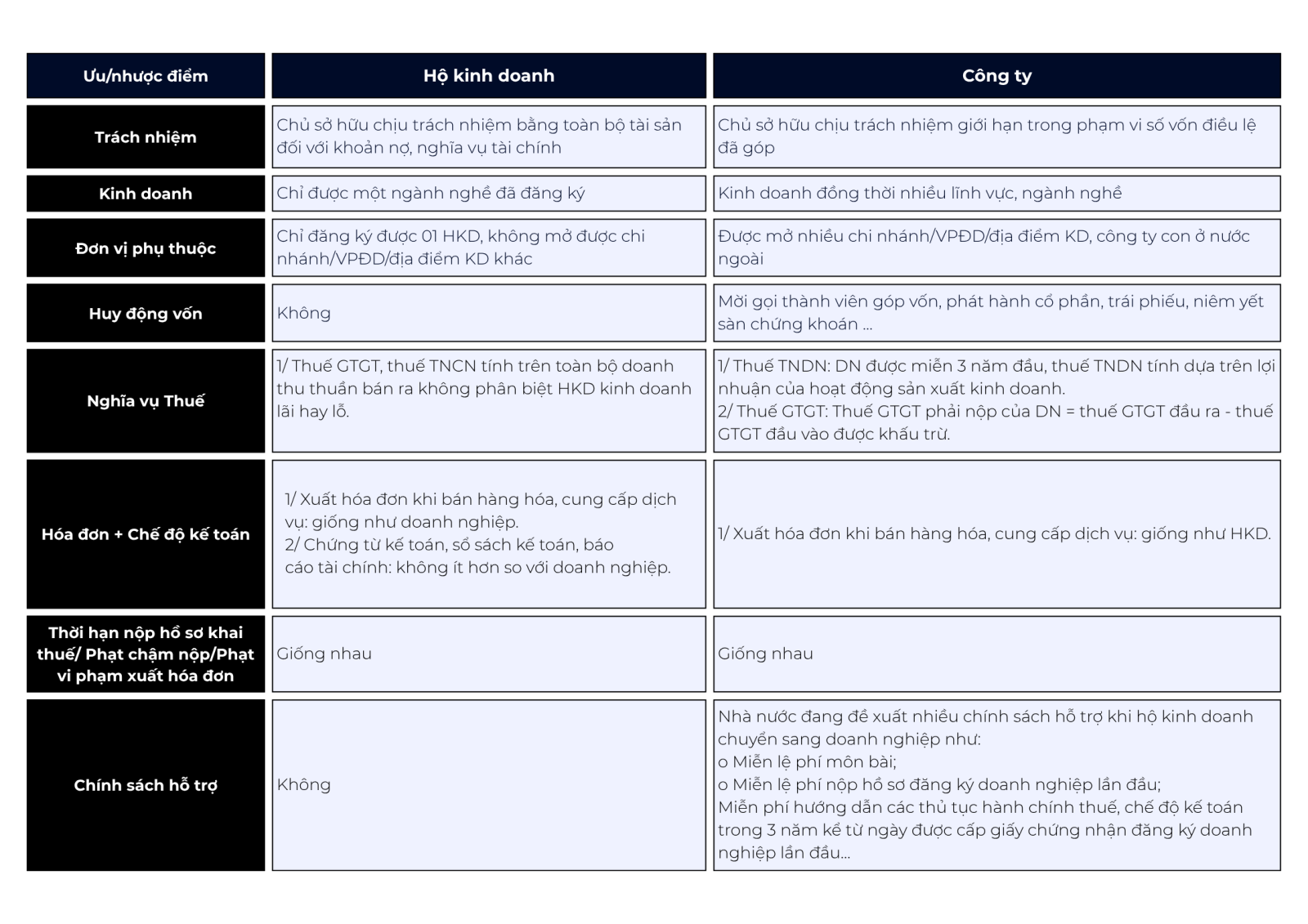 2/ lợi ích khi chuyển đổi hộ kinh doanh cá thể lên công ty/doanh nghiệp