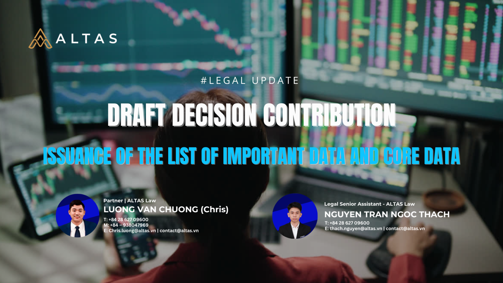 In January 2025, the Ministry of Public Security presented the Draft Decision of the Prime Minister on issuing the list of important data and core data (the "Draft"). The purpose of establishing this list is to improve the legal framework for the construction, development, protection, management, processing, classification, and use of important and core data; state management of important and core data; as well as the rights, obligations, and responsibilities of agencies, organizations, and individuals involved in these activities. This aims to ensure consistency, synchronization, and effective use of data to serve state management and socio-economic development, support the development of digital government, and reform and streamline administrative procedures while fostering socio-economic progress.