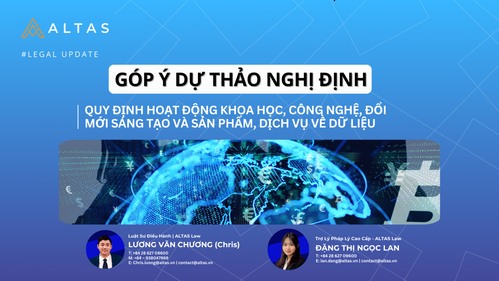 Tháng 1/2025, Bộ Công an đã ban hành Dự thảo Nghị định quy định hoạt động khoa học, công nghệ, đổi mới sáng tạo và sản phẩm, dịch vụ về dữ liệu (Dự thảo lần thứ 2) để lấy ý kiến cũng như góp ý của cộng đồng doanh nghiệp và các chuyên gia. Nghị định mới dự kiến sẽ được Chính phủ thông qua vào tháng 7/2025. Trong bài viết này, Công ty Luật TNHH ALTAS (“ALTAS”/ “Chúng tôi”) xin góp ý một số điểm đáng chú ý của Dự thảo này.