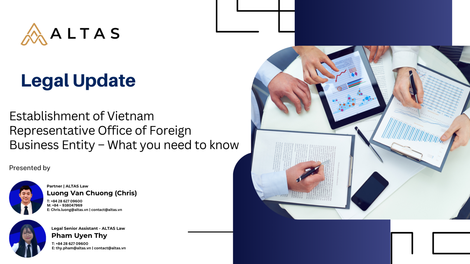 ALTAS offers comprehensive assistance to ensure compliance with Vietnamese regulations, encompassing the preparation of essential documentation, the acquisition of necessary permits, and the navigation of post-licensing requirements. Please contact our Partner Mr. Chris Luong via email chris.luong@altas.vn for further information.