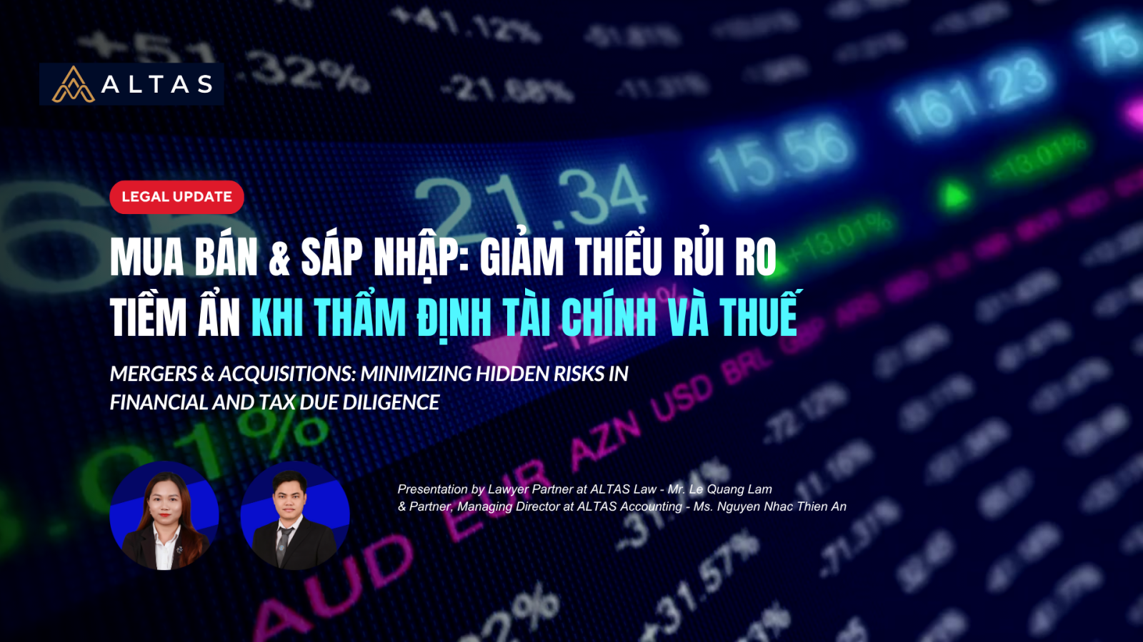 Although financial and tax due diligence is a mandatory process in any M&A transaction, the process itself still carries significant risks—especially in the context of target companies operating in emerging markets, which often lack transparency, stability, and have complex legal environments. Early identification of risks and the implementation of effective preventive measures can help investors not only protect the transaction’s value but also avoid post-M&A disputes that may negatively impact long-term business strategies.