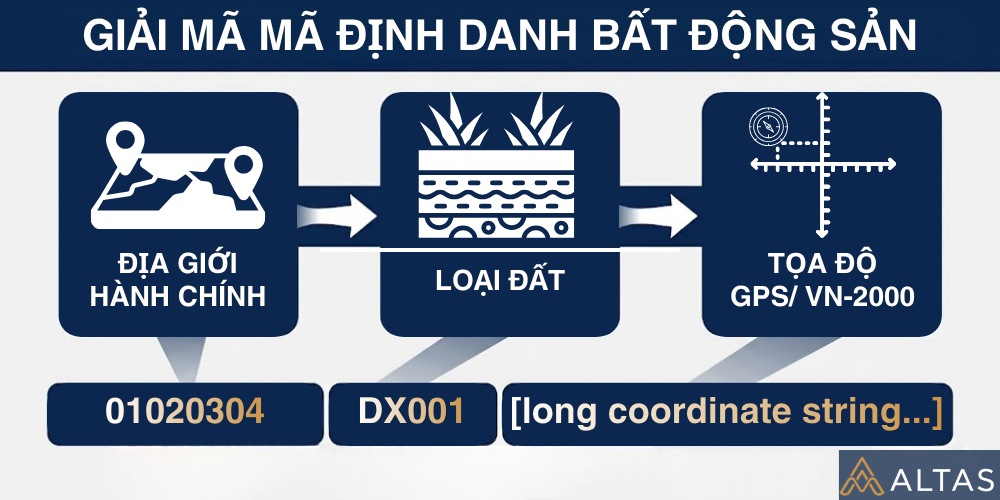• Mã định danh thửa đất: Định danh tỉnh, thành phố, quận huyện nơi tài sản tọa lạc. Một thửa đất cụ thể chỉ có 01 mã định danh và là duy nhất trên toàn quốc.