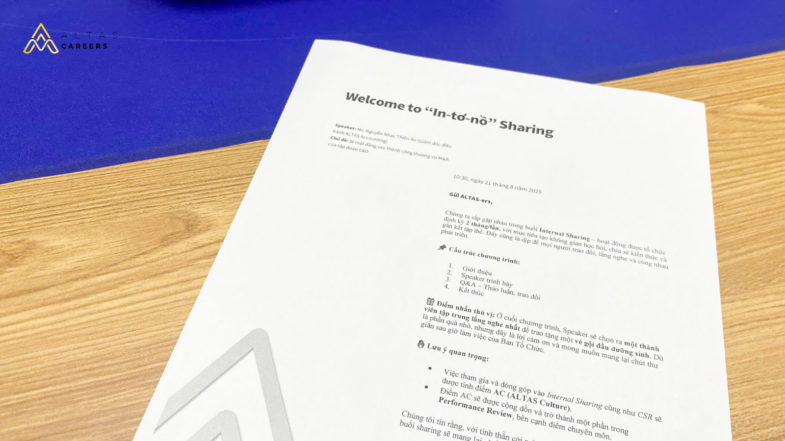 Beyond knowledge, each Internal Sharing session also contributes to strengthening ALTAS Culture (AC Points) – a key element considered in Performance Reviews alongside professional expertise. This demonstrates ALTAS’s ongoing commitment to nurturing a culture of learning, encouraging sharing, and building sustainable growth.